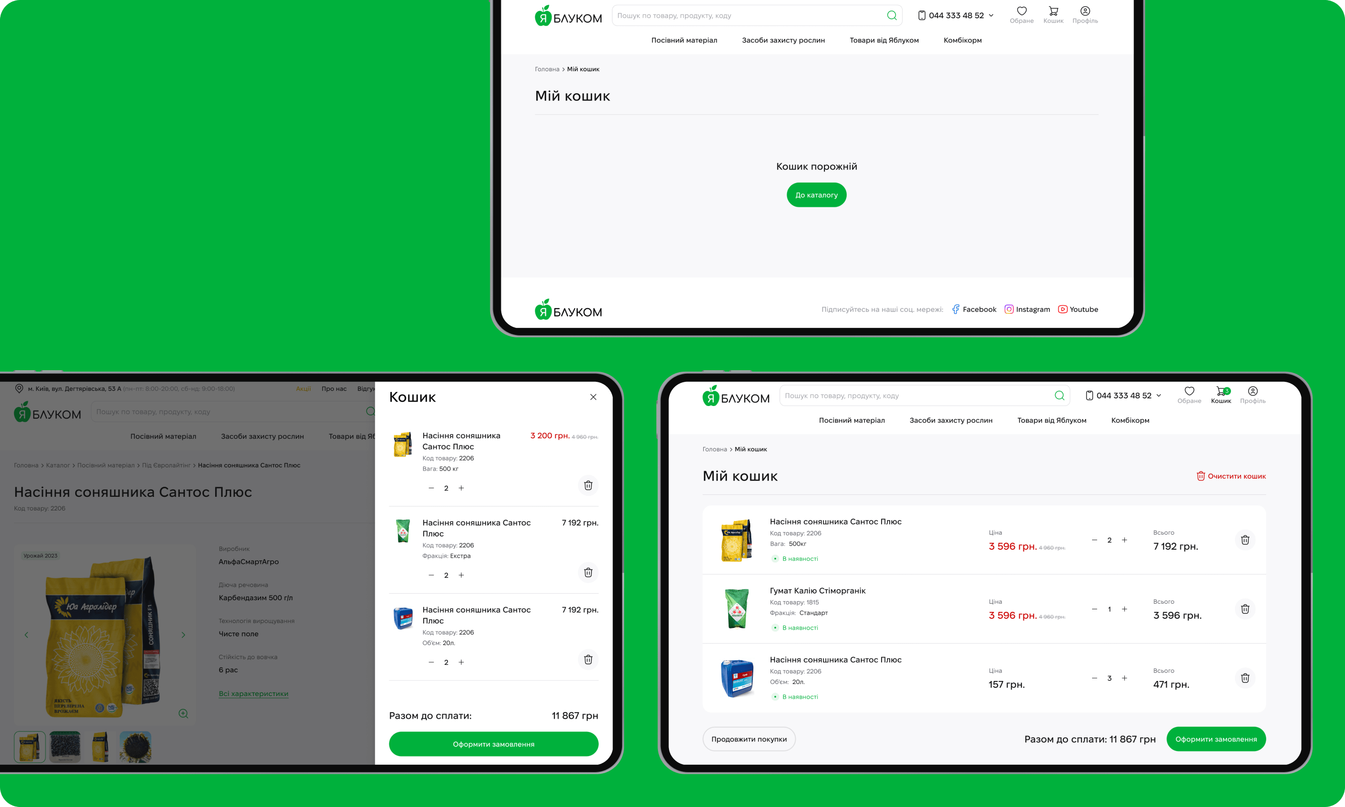 Яблуком — провідний український інтернет-магазин, що спеціалізується на продажу насіння, засобів захисту рослин, добрив та аграрної продукції. Платформа орієнтована на фермерів та аграрні підприємства, забезпечуючи широкий асортимент товарів та зручний процес замовлення.